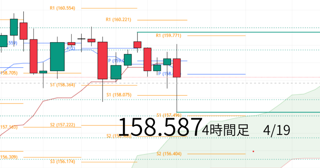 現値(158.587)はピボットポイントの下にあります。